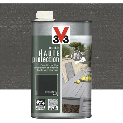 L’Huile Haute protection V33 Gris ardoise embellit, rénove et protège durablement les mobiliers de jardins des UV, eau, taches et graisses. Huile extérieure finition opaque