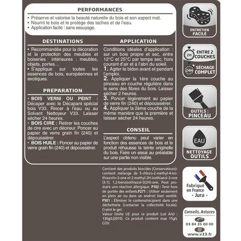 Huile & Protection V33 Argent mat préserve et valorise la beauté naturelle et l’aspect mat de vos meubles et boiseries à l’intérieur de l’habitat. Cette huile nourrit le bois et le protège des taches et de l’eau. Vous pouvez alors facilement lessiver vos meubles, en conservant la protection et l’aspect du bois.