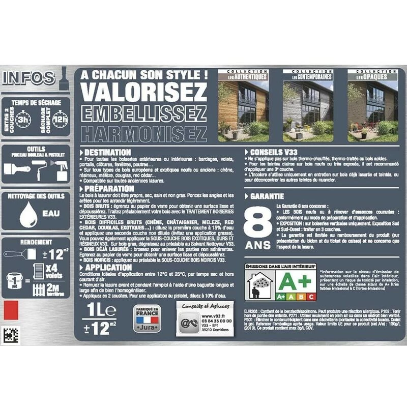 V33 Lasure V33 Hp Les Contemporaines 8 Ans épicéa Fumé Satiné 1 L