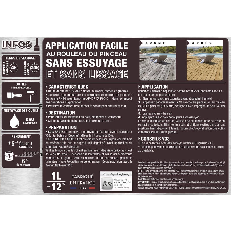 Vitrificateur V33 Gel Escalier Chêne Moyen Satin 0,75 L – Incolore
