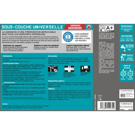 La Sous-Couche Universelle prépare et uniformise les fonds avant peinture. Elle favorise une meilleure tenue des peintures pour une finition parfaite et durable.