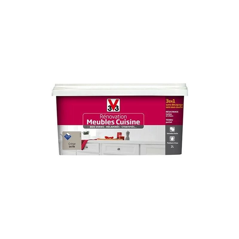 V33 Rénovation Meubles Cuisine (Bois Vernis-Mélaminés-Stratifiés) Satin Seigle 0,75 L