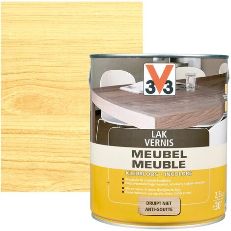 Le vernis meuble V33 incolore satiné 2,5L met en valeur le veinage du bois. Le vernis Meuble assure une haute résistance aux taches, chocs, rayures et à l’eau et donne une teinte transparente à la finition satinée au bois. Il décore et protège les boiseries intérieures comme les meubles, portes, rampes d’escaliers. Grand confort d’application, le vernis ne coule pas et son tendu est parfait. Comptez 3 heures de séchage entre deux couches et 24 heures pour un séchage complet. Absence d’odeur gênante.
